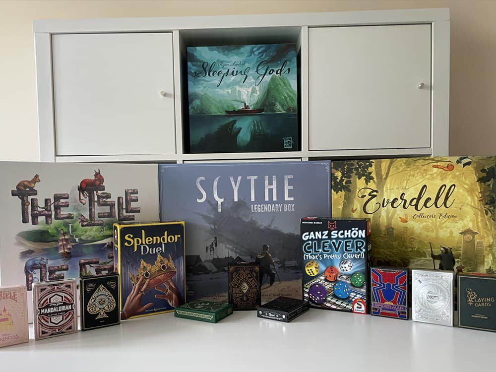 We don’t have that many board games. Just a crammed 3x4 Kallax unit. Plus a sideboard. And a cabinet upstairs. Plus the loft. Ok, we’re going to stop there… Games…